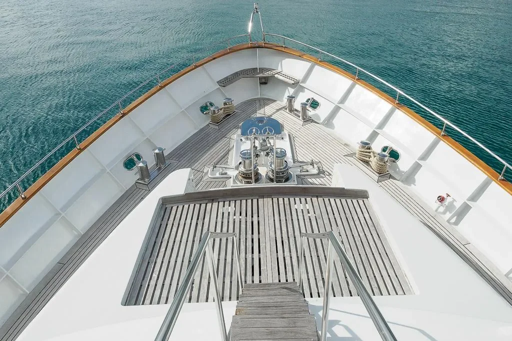 Construido en acero con superestructura de aluminio, este yate destaca por su solidez, excelente comportamiento en navegación y una autonomía de aproximadamente 3.600 millas náuticas, ideal tanto para largas travesías como para uso privado o charter.