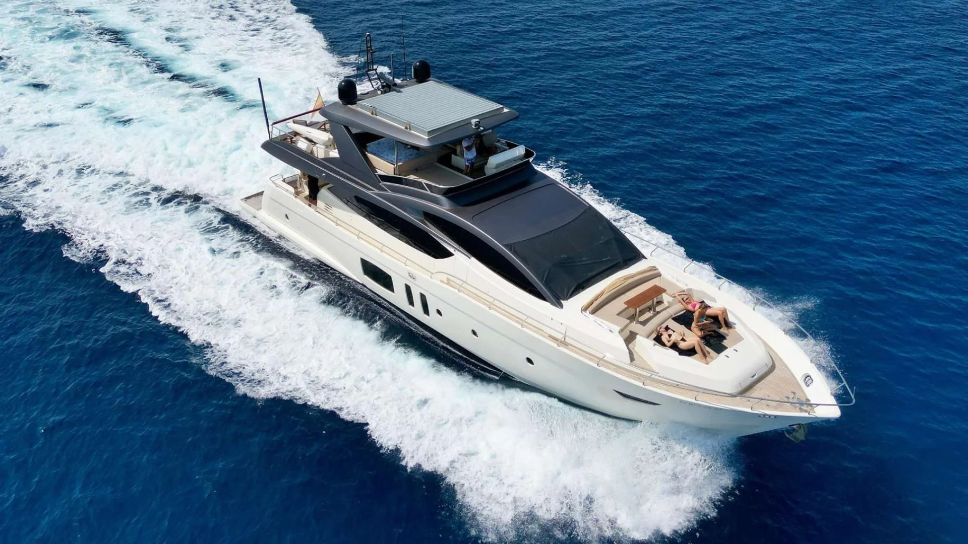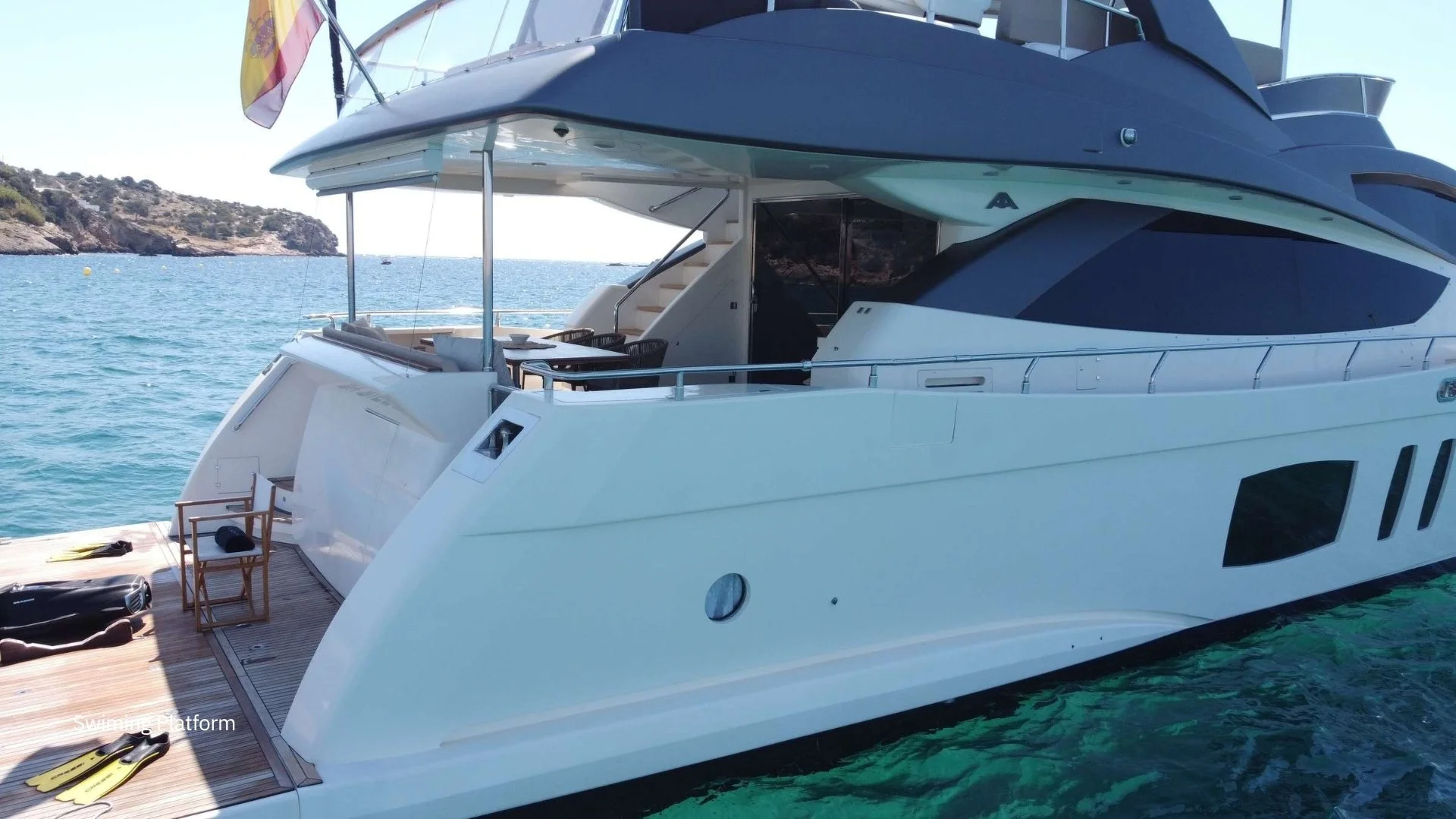 En cubierta, destaca su generoso flybridge, equipado con solárium, zona de comedor y estación de mando elevada, ideal para disfrutar de la vida a bordo. La bañera de popa y la plataforma permiten una excelente conexión con el mar.