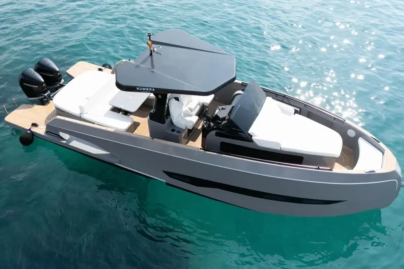 Gracias a un casco eficiente y a una motorización bien equilibrada, el Kumbra 34 garantiza una navegación estable, segura y agradable, posicionándose como una opción sólida dentro del segmento de day boats premium, donde destacan la discreción estética, la versatilidad y la coherencia de su diseño.