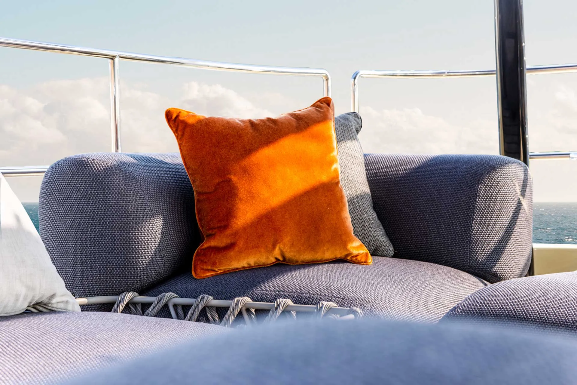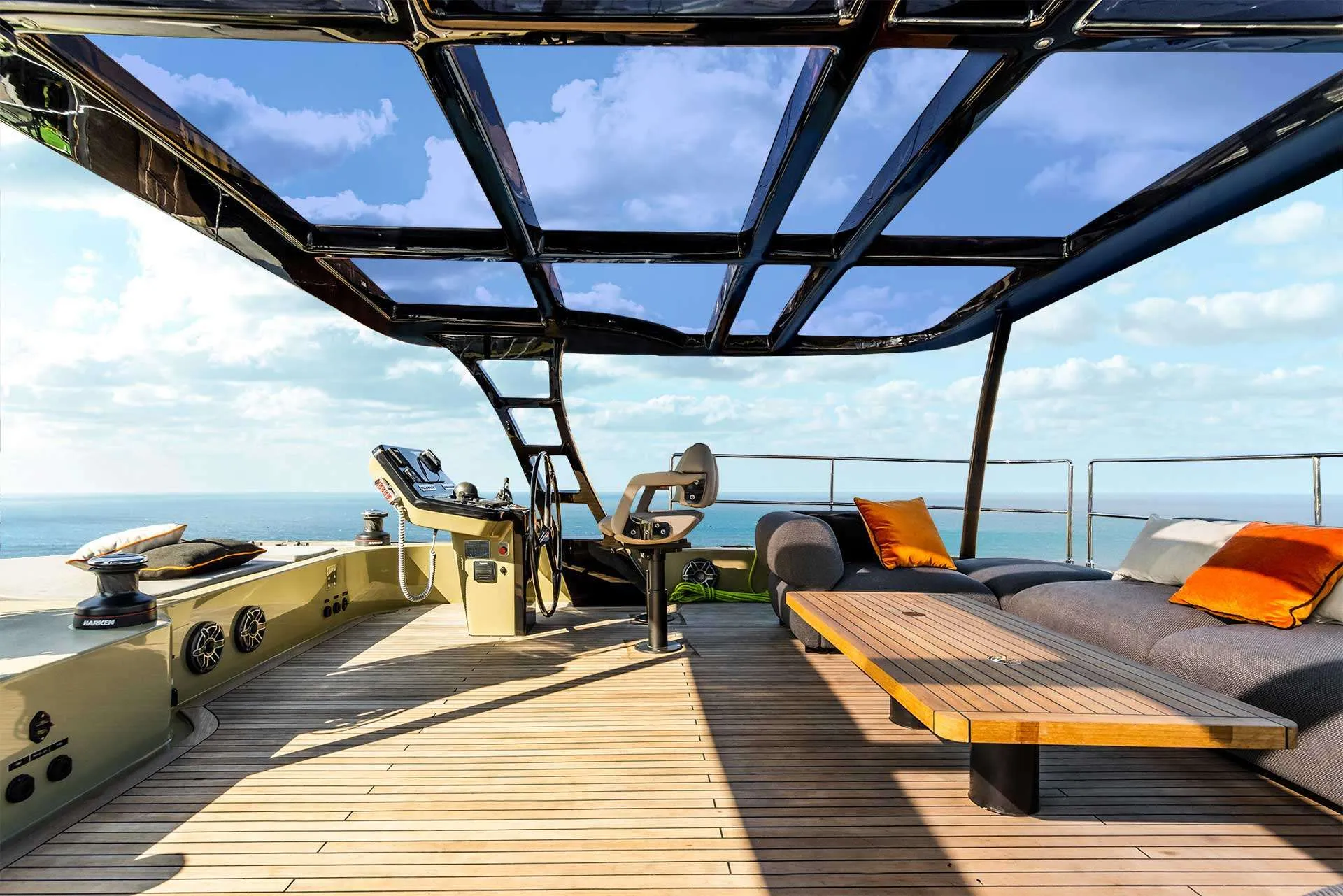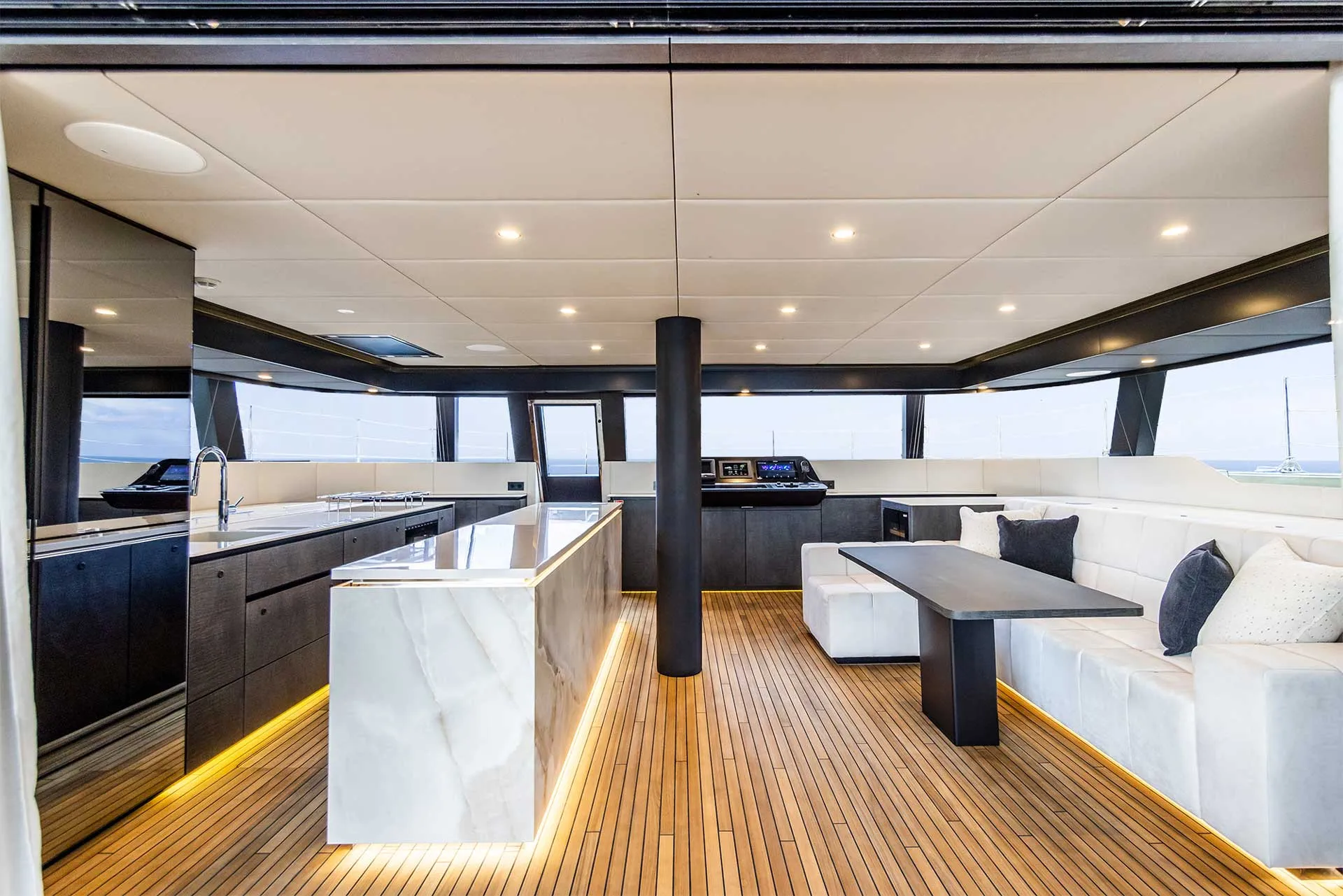 Con líneas modernas y un diseño pensado para la comodidad y la elegancia, esta embarcación de 18,4 metros ofrece espacios exteriores amplios y luminosos, que invitan al relax y a la convivencia en navegación o fondeo.