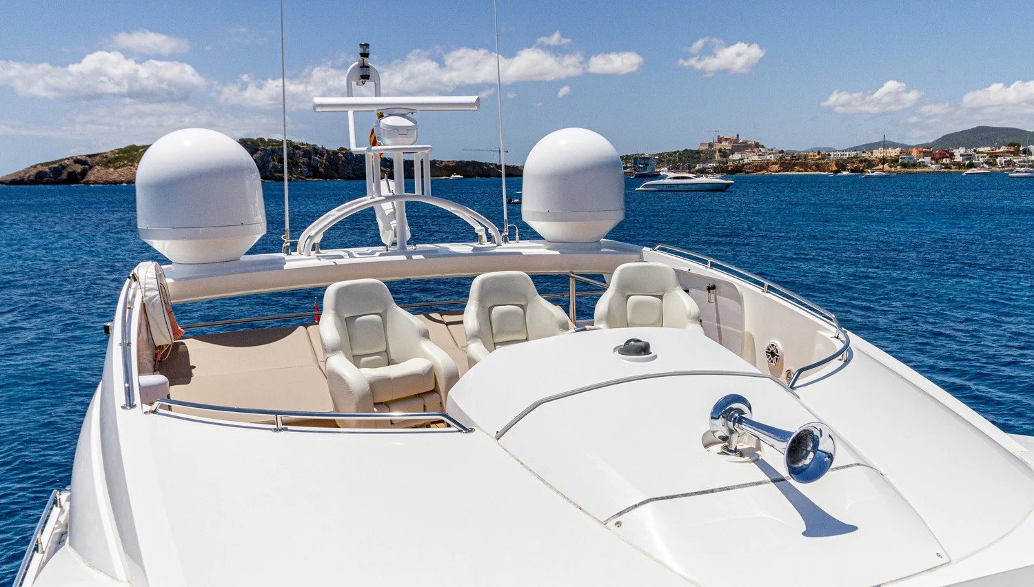 Con líneas deportivas y una presencia moderna, este yate de 26,5 metros construido por Sunseeker ofrece un equilibrio ideal entre diversión, elegancia y confort para explorar el mar sin renunciar al estilo.