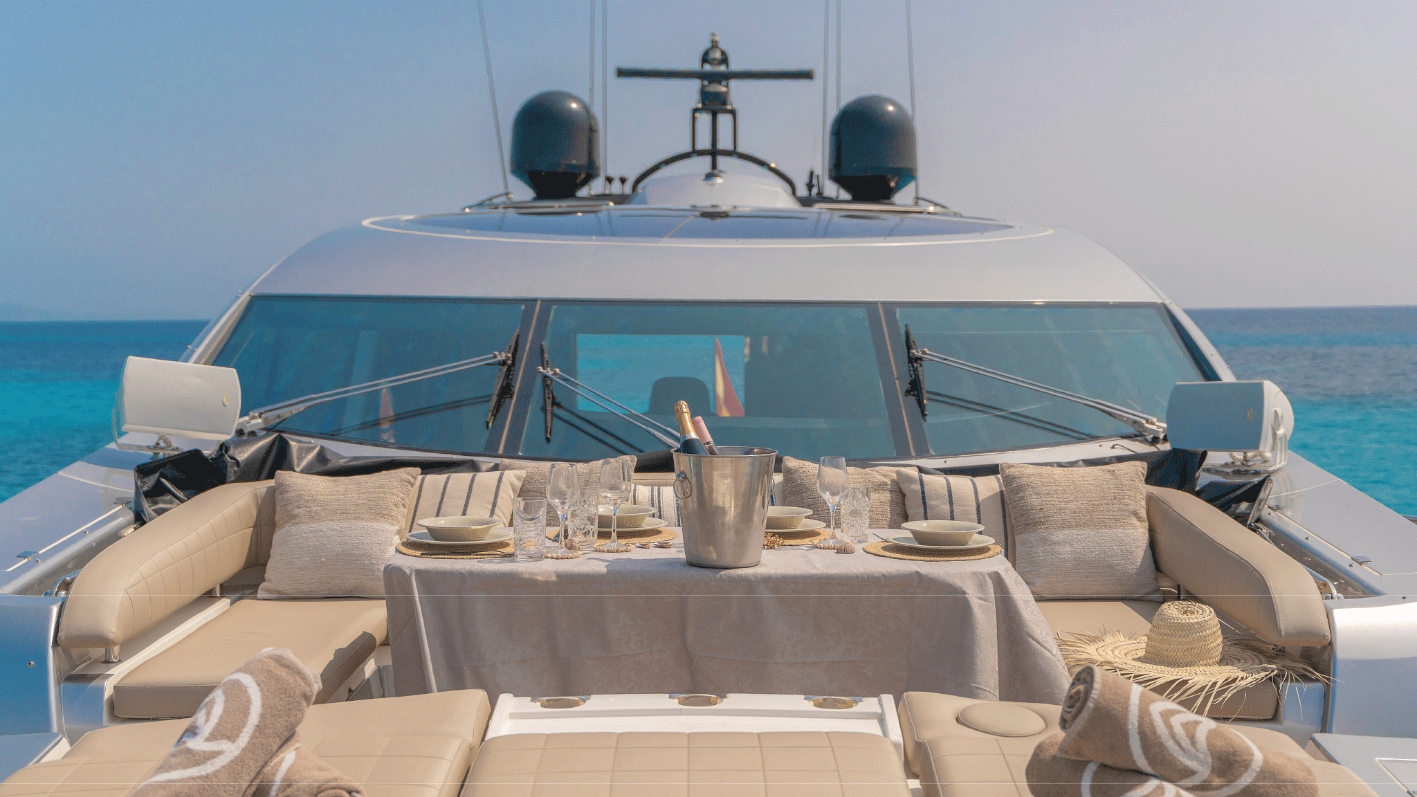 Su tripulación profesional de cuatro miembros garantiza una experiencia impecable, cuidando cada detalle desde la navegación hasta el servicio a bordo. Con una velocidad de crucero de 24 nudos y una potente presencia sobre el agua, este yate combina lujo, deportividad y confort en partes iguales, ofreciendo una de las experiencias de charter más completas de su categoría.