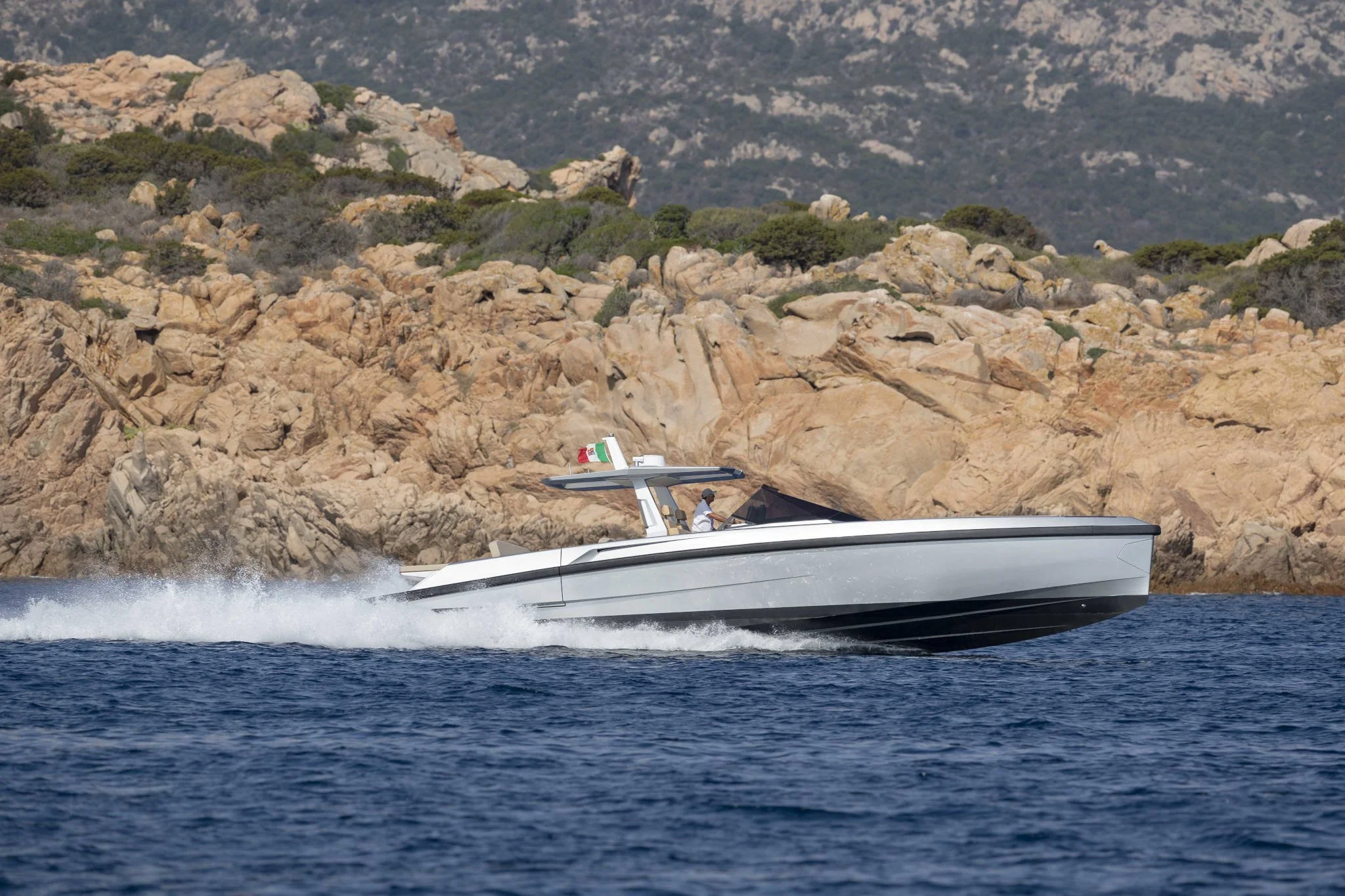 El placer de conducir no tiene rivales. Los comandos de joystick y el sistema de guardabarros envolventes simplifican las maniobras. Además, los dos motores Volvo Penta IPS 650 garantizan una velocidad máxima de 38 nudos y una autonomía de crucero de 300 millas náuticas. Todo con el máximo confort y con un suave desplazamientos en los olas, gracias a la proa vertical y a los interceptores automáticos.